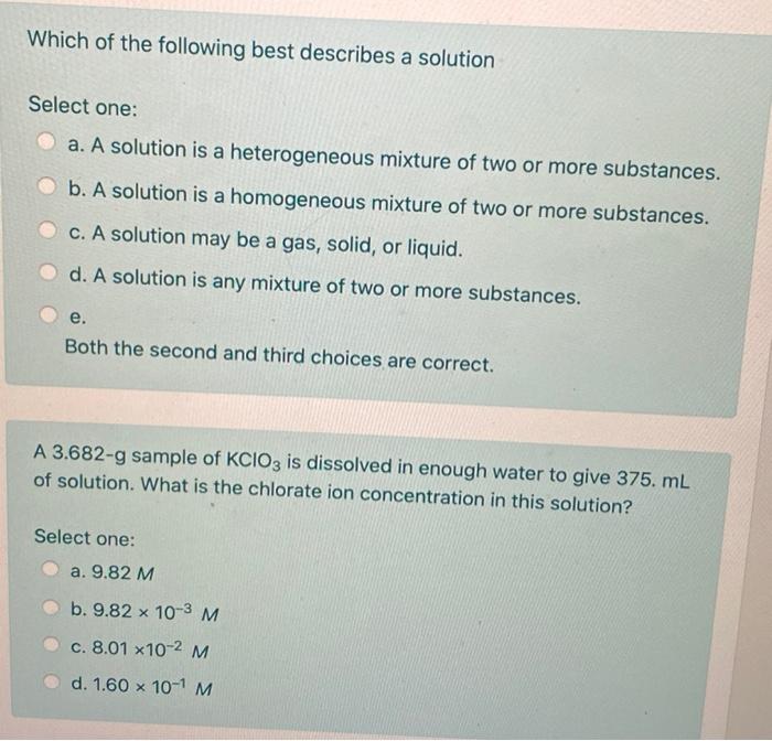 Solved Which Of The Following Best Describes A Solution Chegg Com
